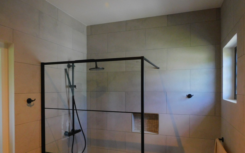 Outside, you will find two covered seating areas, a spacious swimming pool, a toilet, and a laundry room. There is also a studio with one bedroom and one bathroom.