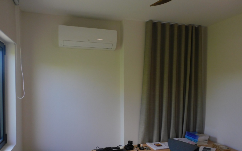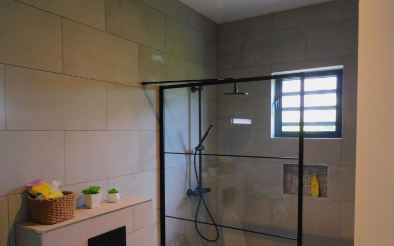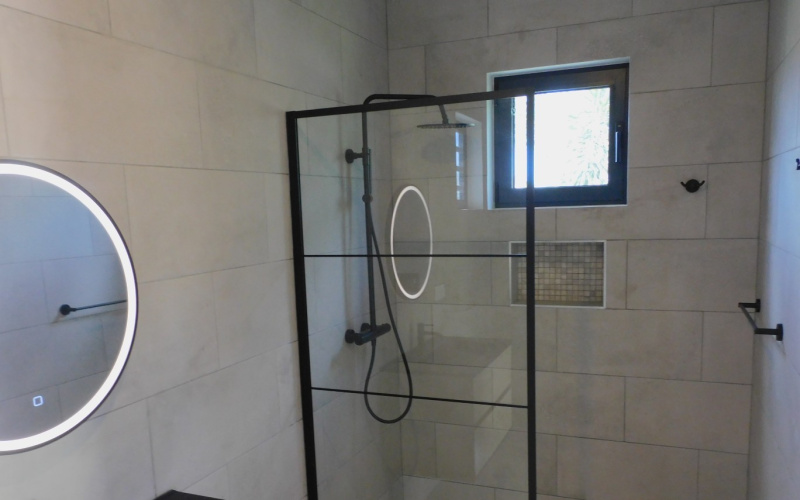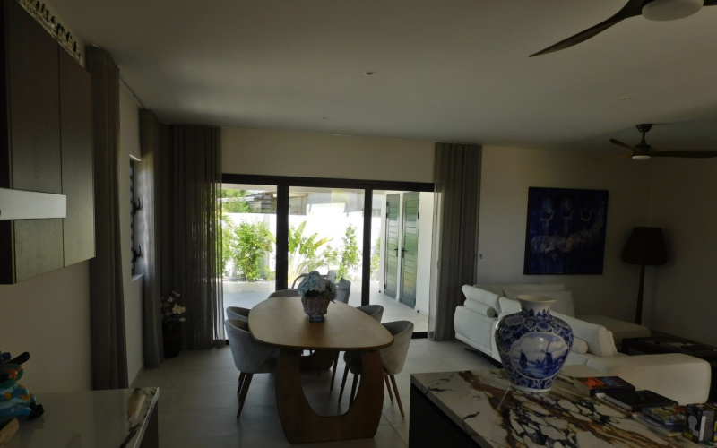 Upon entering, you immediately step into a beautiful modern kitchen with a cooking island and a spacious living room. The house also has two bedrooms, one of which has an en-suite bathroom, an office space, and a second bathroom.